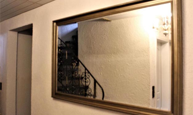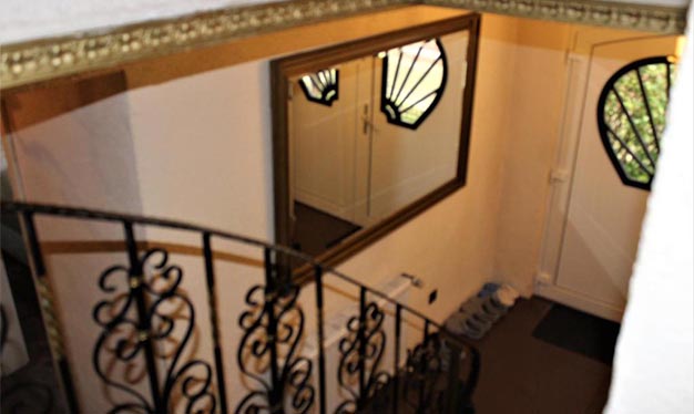 Vom Flur mit eigenem Eingang gelangt man über eine schöne Marmortreppe in die Etage, in der sich ein geräumiges Wohnzimmer befindet.