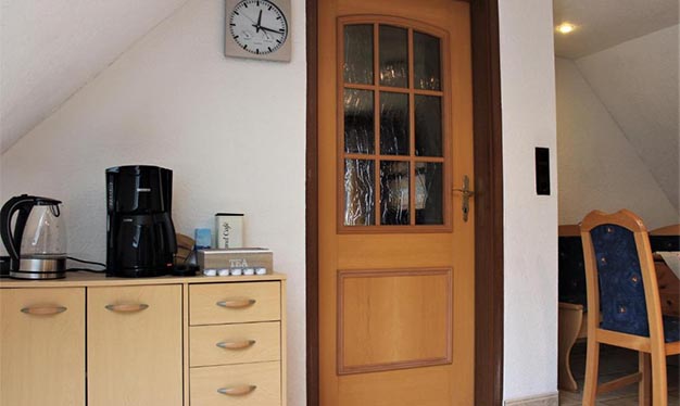 Eigener Eingang, Flur, Küche mit Einbauküche, Wohnzimmer, Badezimmer mit Dusche, WC und Waschbecken