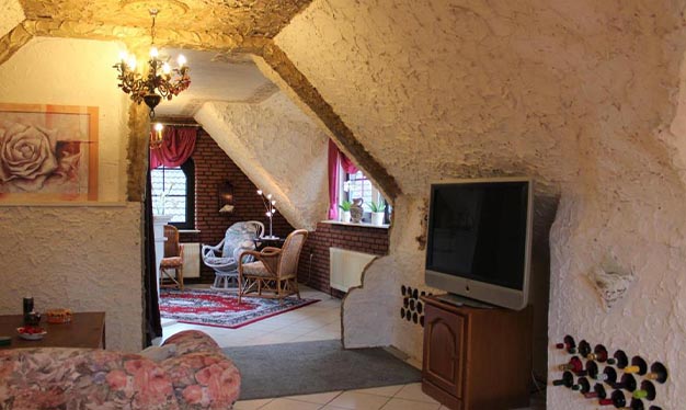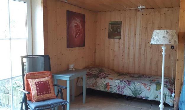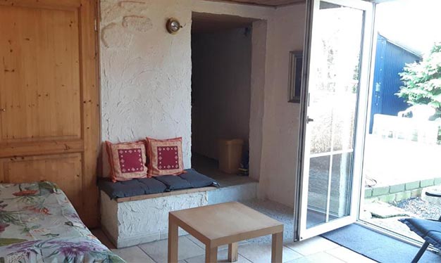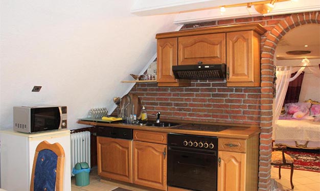Ausgestattet mit einem großen Himmelbett für 2 Personen, einer Küche mit Einbaugeräten und einem Schlafzimmer für 1 Person.